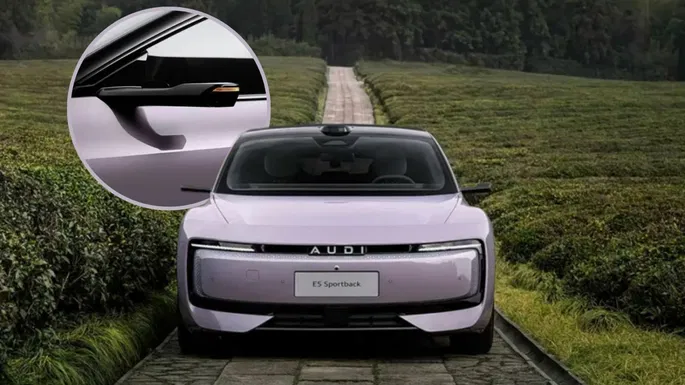 E5 Sportback は伝統的なサイドミラーを廃し、デジタルミラー(カメラ & モニタ表示) を採用。これにより死角警報(BSD)、ドア開放警告(DOW)、後方横断車両監視(RCTA)などの機能と統合が図られています。