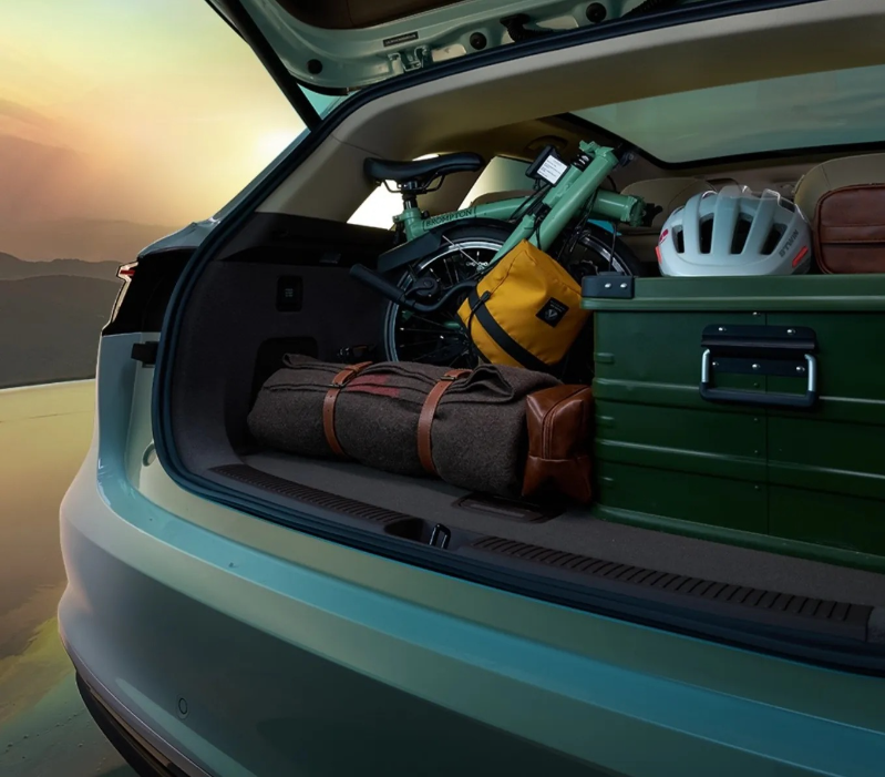 前部トランク(フロントトランク)は 124 リットル、後部トランクは 601 リットルと発表され、大きな荷物やキャンプ機材なども収納可能なサイズ感です。