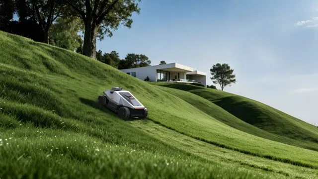 Goko M6の最大の特徴は、最大90%勾配(約42度)という極めて急な斜面を登坂可能な走破性能だ。四輪駆動とアダプティブサスペンションを備え、不整地でも安定した走行を実現する。さらに75mmまでの段差を乗り越えられるため、根や凹凸の多い庭でも安定した作業が可能とされる。対応する敷地面積は1,000〜10,000㎡と、大規模な庭園や別荘地向けの設計だ。
